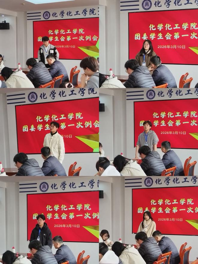 2026年3月10日中午,化学化工学院团委学生会全体成员在化工楼407会议室召开新学期第一次全体例会。本次会议旨在总结寒假工作成果,明确新学期工作方向,同时为全体成员注入奋进动力,开启学生会工作新篇章。院党委副书记龙刚、辅导员李东出席了本次会议。