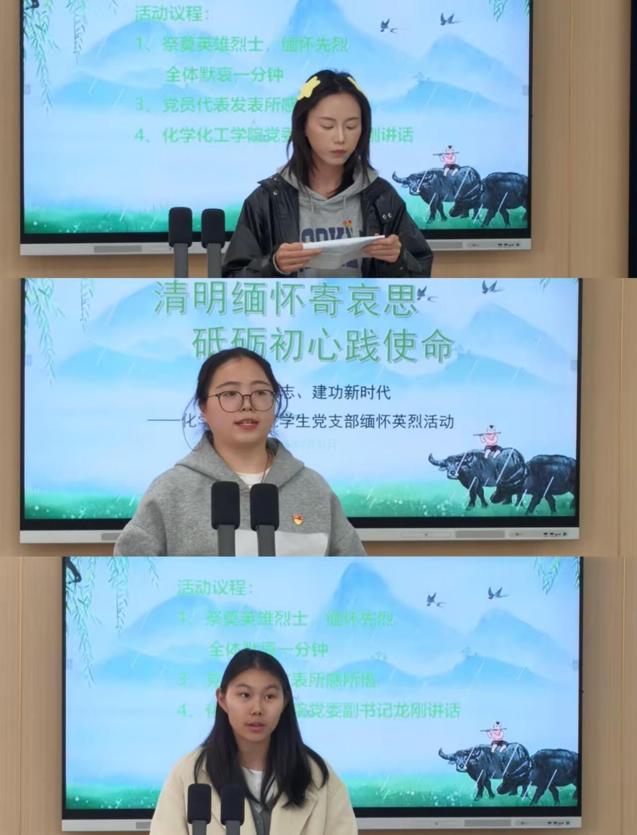 活动第二项,学生各党支部党员代表依次发言,分享自己的感想。他们结合近期的学习和生活,畅谈了对英烈精神的理解,纷纷表示要以革命先烈为榜样,坚定理想信念,努力学习专业知识,提升自身本领,将对英烈的缅怀之情转化为奋勇前进的强大动力,在新时代的征程中贡献青春力量。